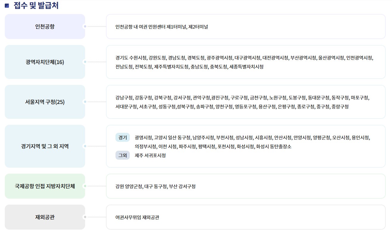 - 본인 확인이 불가능하거나 5년 이내 3회 이상 여권 분실자는 발급이 불가능합니다.