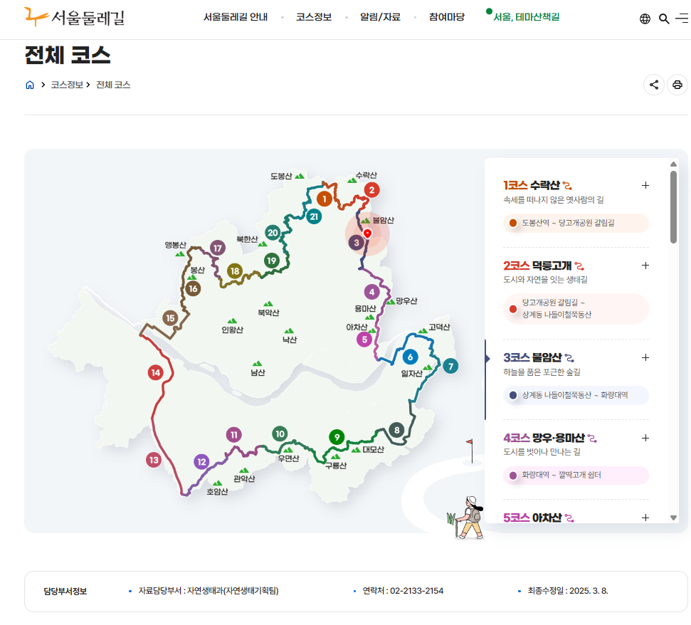 ▲ 전체 코스 지도 (출처: 서울둘레길 공식 사이트, 2025.03.08 기준)