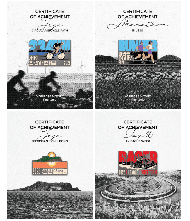 완주 시 제공되는 구성품: 도전 뱃지 + 기념 배지 + 제주 풀패키지 혜택