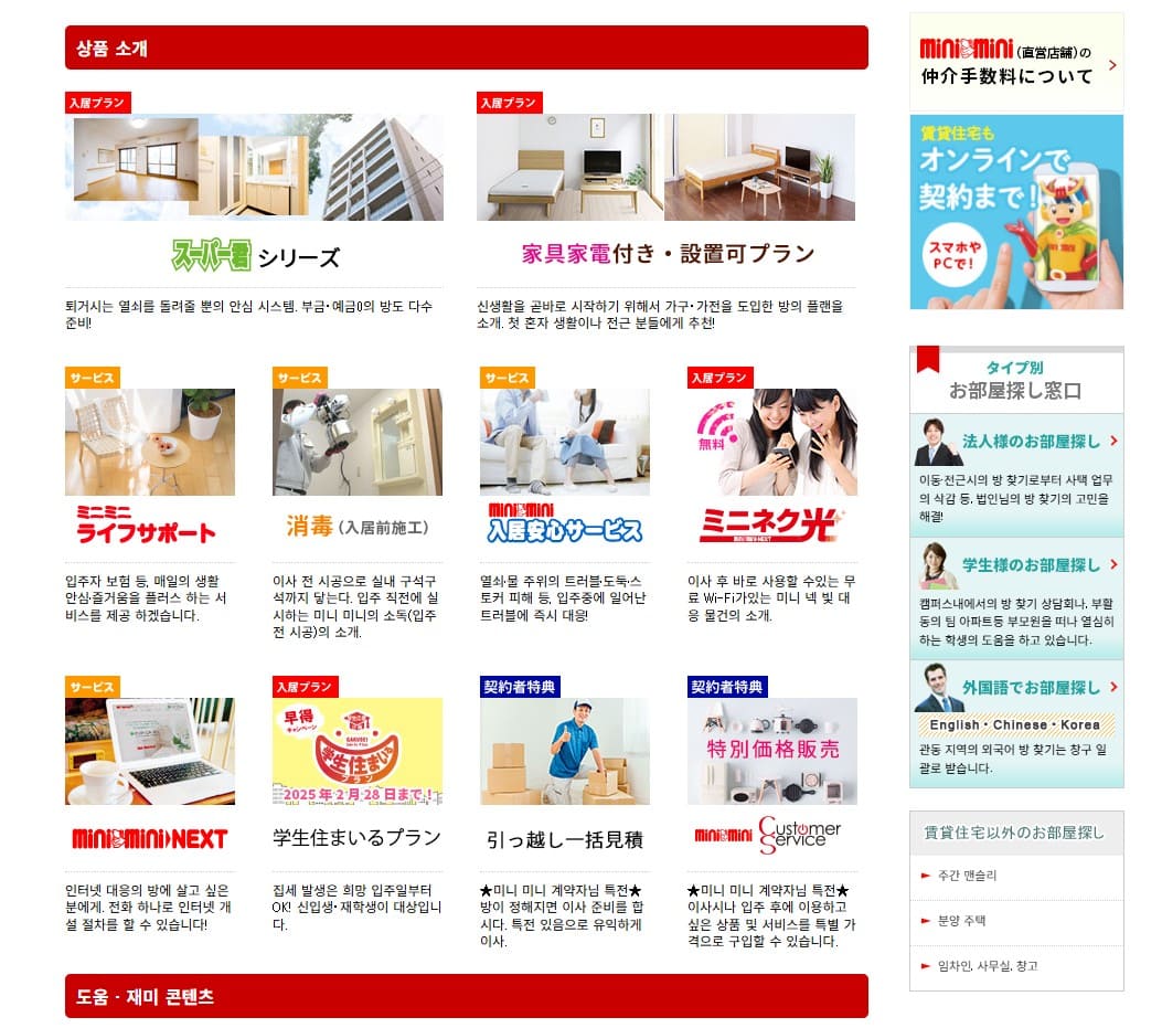 - MINIMINI – 일본 전국에 지점이 있어 현지 부동산 정보를 얻기 좋아요.